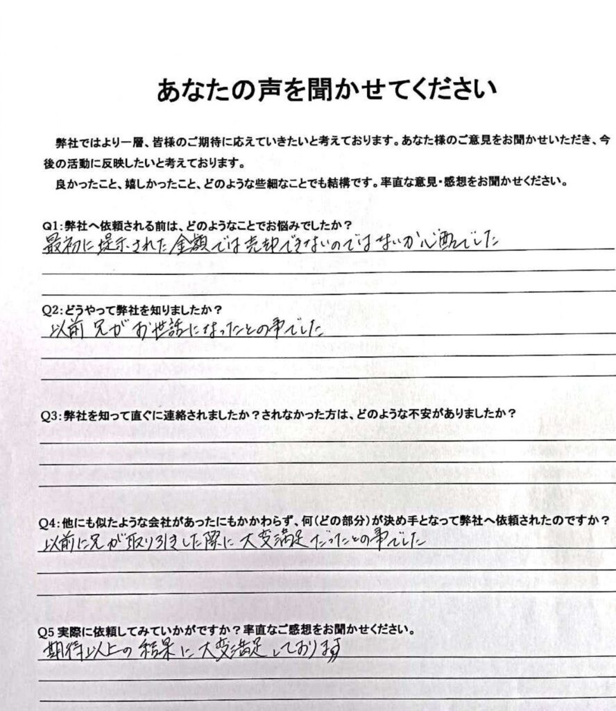 A:以前に兄が取り引きした際に大変満足だったとの事でした